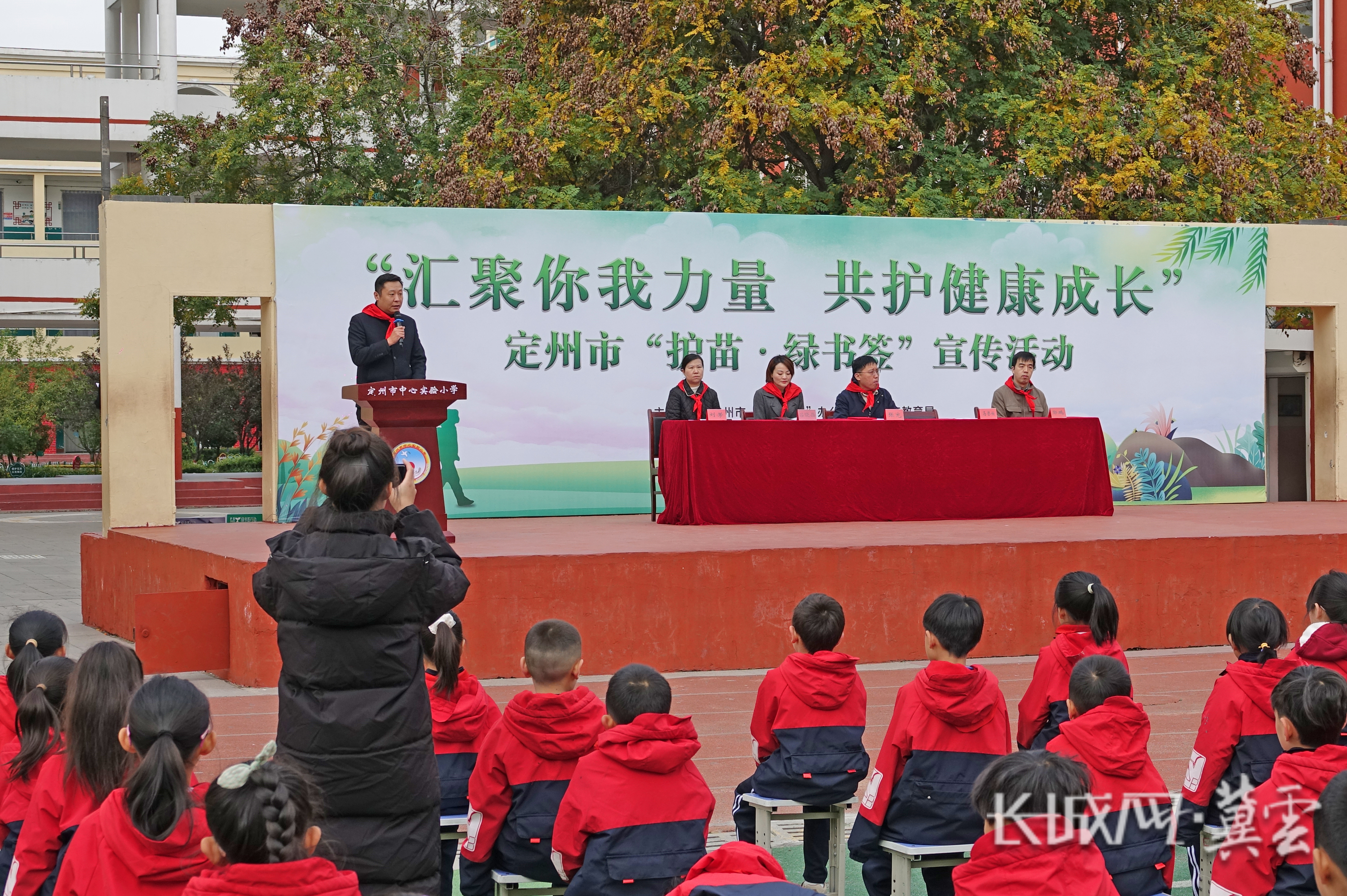长城网·冀云客户端10月20日讯(记者 赵绅光)10月20日,定州市中心实验小学里暖意融融,2025年“护苗・绿书签”宣传活动在此开展,230余名师生代表齐聚,共同投身这场守护未成年人健康成长的暖心行动。