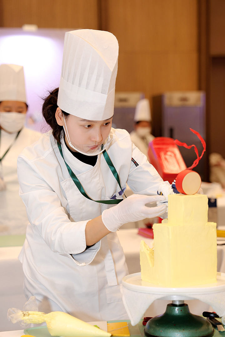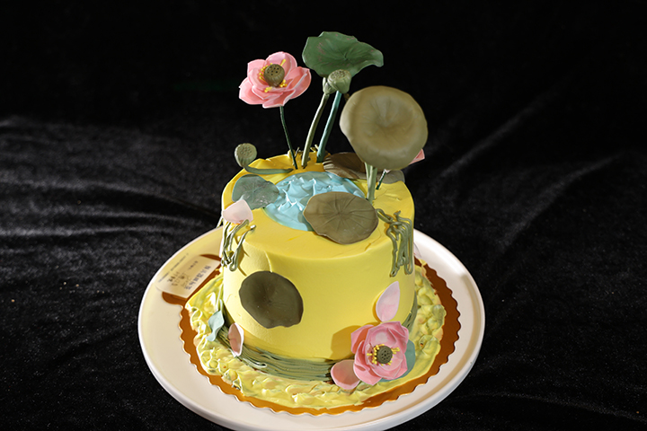 为备战此次大赛,程少怡提前深入研读竞赛规则与评分标准,针对技术难点制定了系统训练计划。她坚持在实训车间反复推敲每一道工序,尤其在作品的口感层次与视觉呈现上精益求精。比赛过程中,她沉着应对、稳定发挥,最终呈现的作品造型典雅、口感丰富,既彰显扎实功底,又融合创新理念,获得评委一致认可。