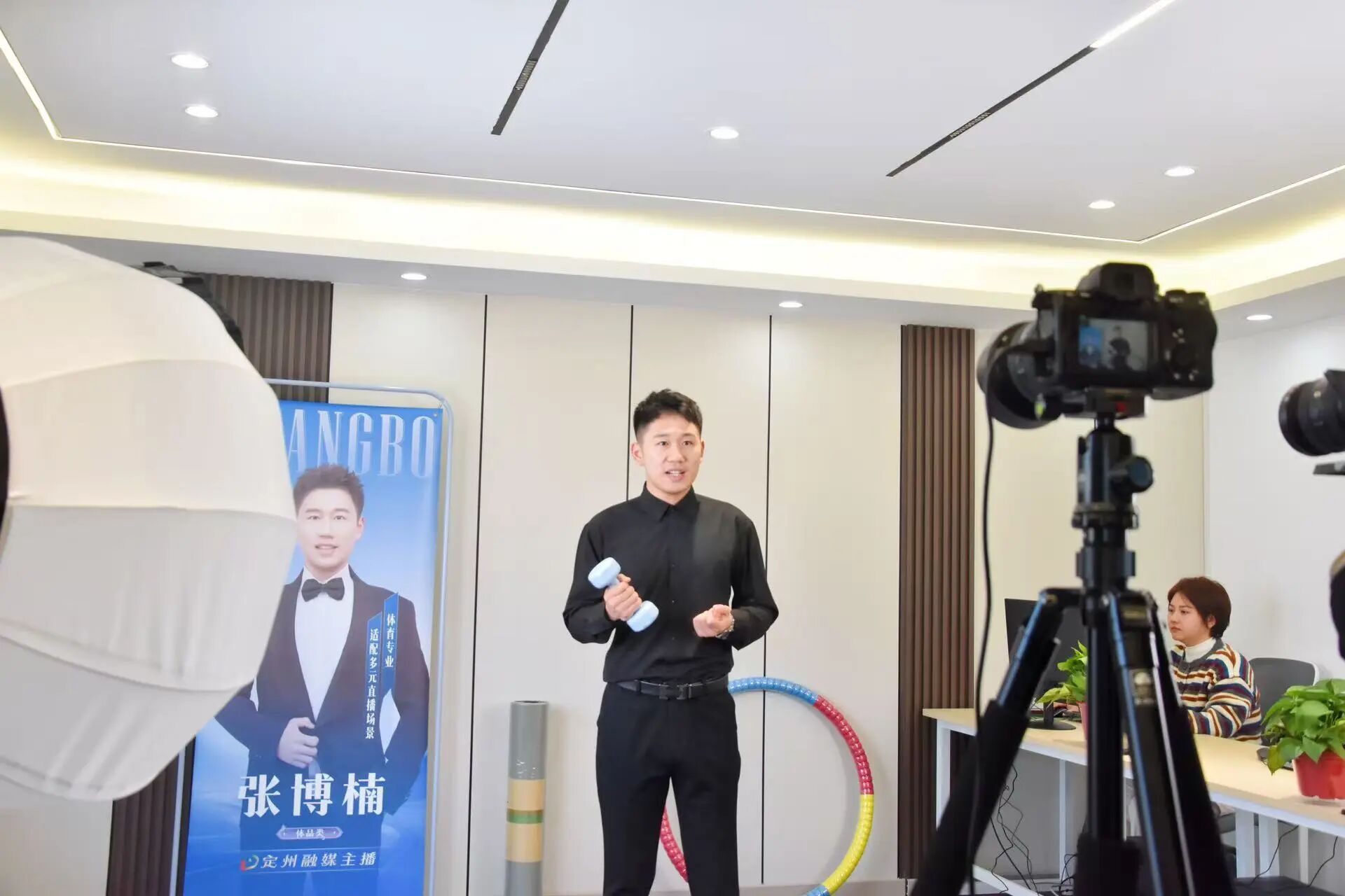 “大家好,我是定州融媒主播博楠。曾经我是一名体育专业跆拳道运动员,如今我回到了家乡定州,为家乡的体品产业助力。”在“博楠陪你瘦”体品直播间内,主播正在从材质、工艺、设计、性价比等多个维度向观众详细介绍哑铃、壶铃等体育健身产品,并结合自身的运动体验分享使用感受,让观众全方位了解产品的优势。主播语言表达流畅自然,吐字清晰,语速适中,在产品推介与运动示范之间自如切换。