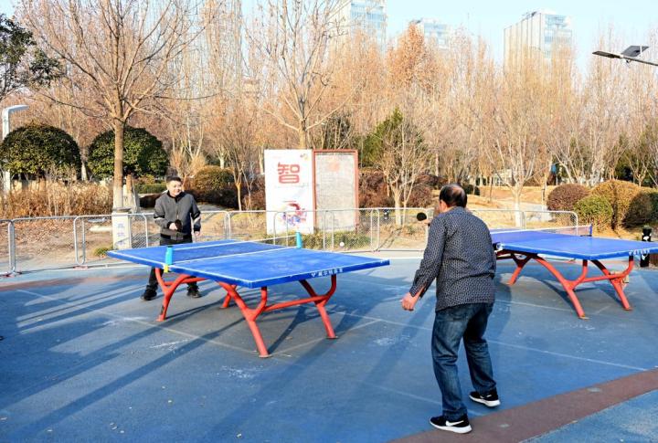 图为市民在时代公园打乒乓球。