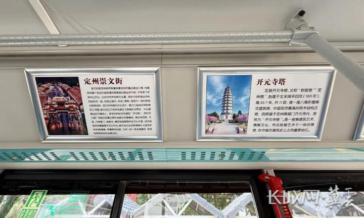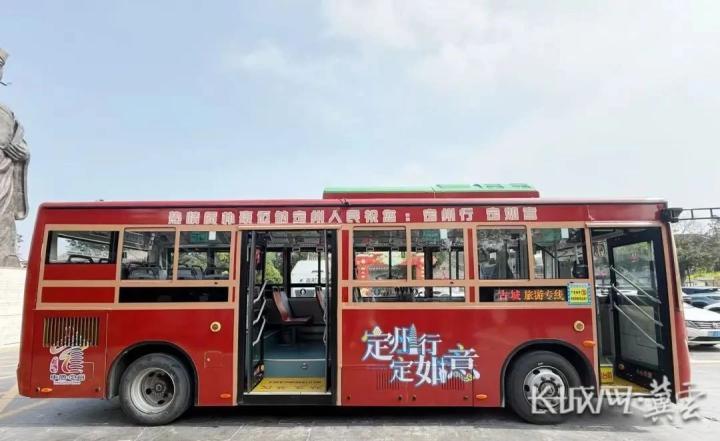 古城旅游专线车辆车身以复古红砖色为主色调,融合定州特色元素,行走间仿佛移动的城市文化名片,让游客未及景点便能先感受到定州的独特韵味。不仅如此,车上还配备了各旅游景点介绍图,让旅客在乘车途中就能提前了解景点信息,规划游览节奏。