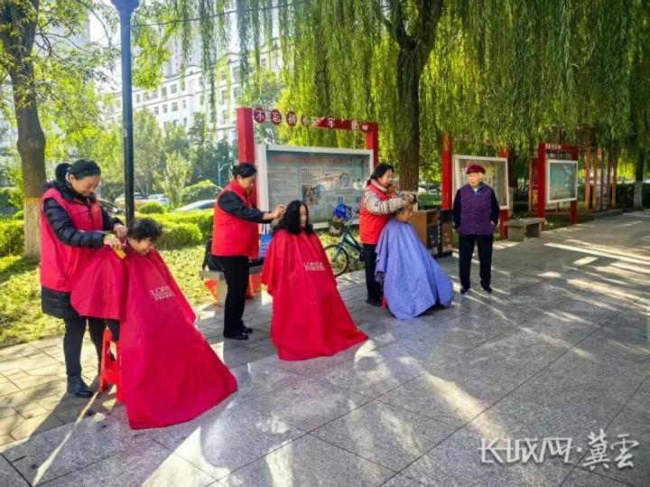 现场为老年人提供义剪服务。