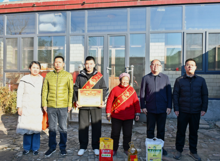 工作人员到叮咛店镇二郎庙村张凯家中送喜报。