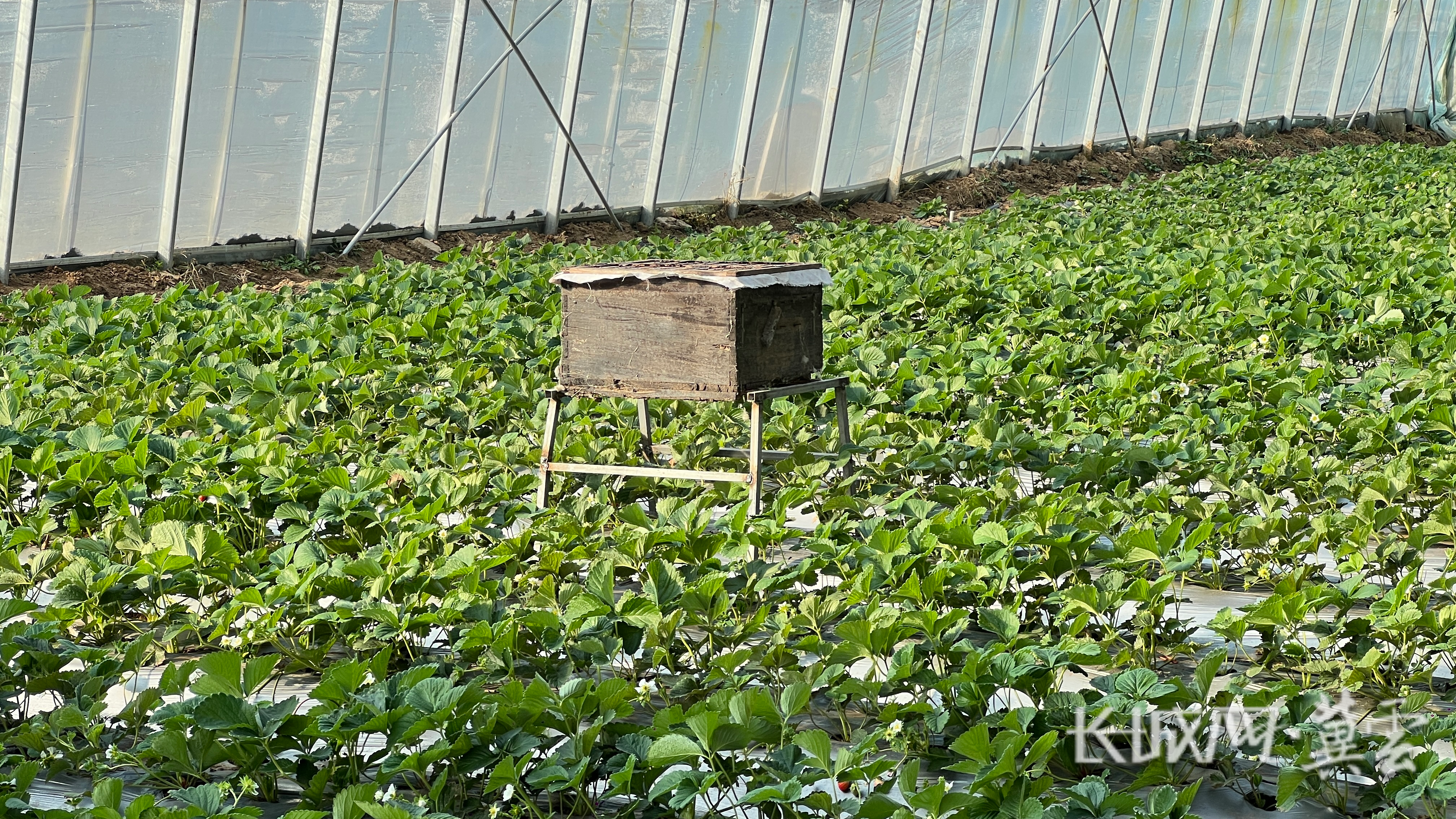 草莓棚里的蜂箱。长城网·冀云客户端 李征航 摄