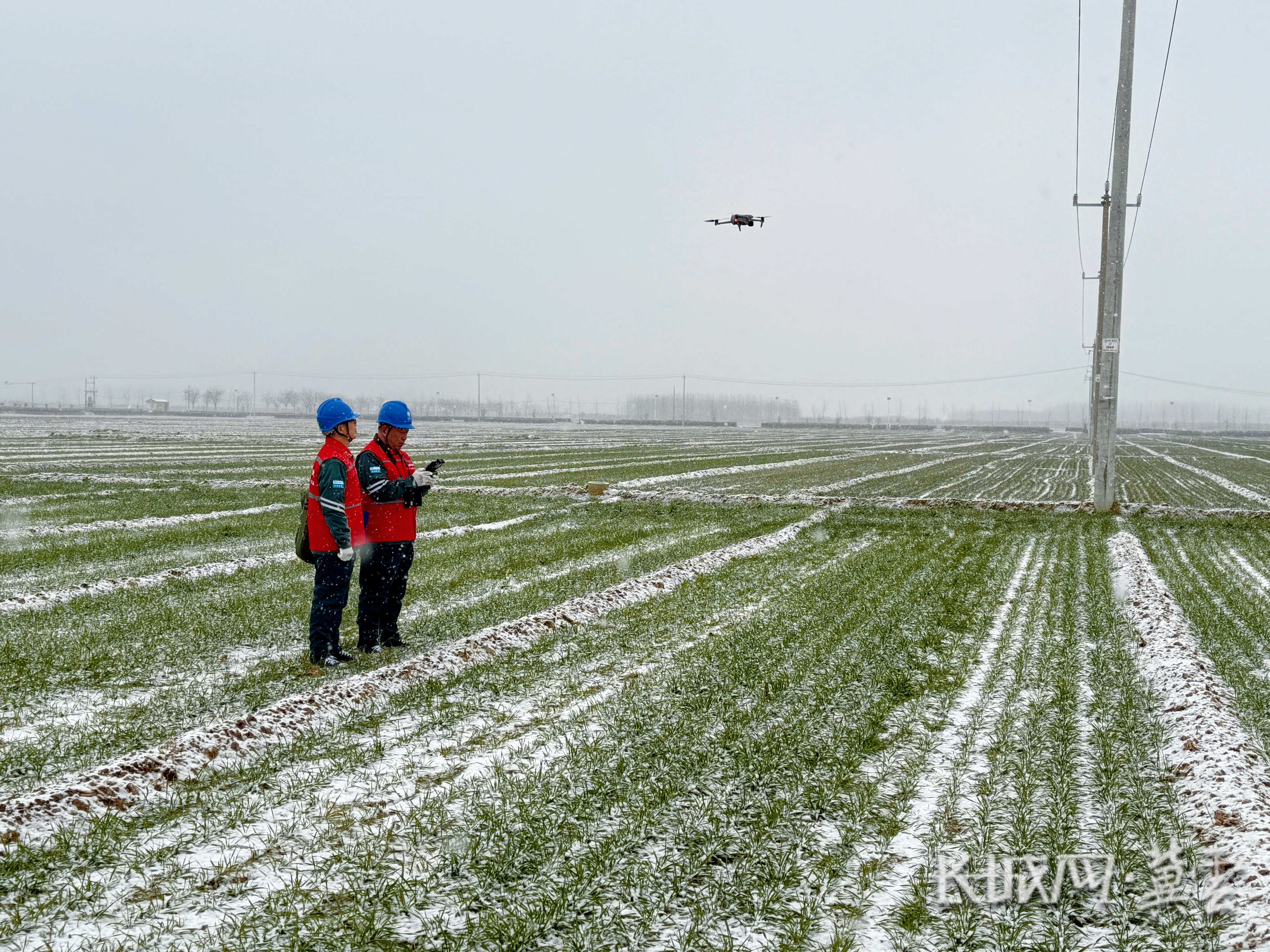 国网定州市供电公司员工对10千伏唐河555线路开展雪中特巡。来瑞 摄