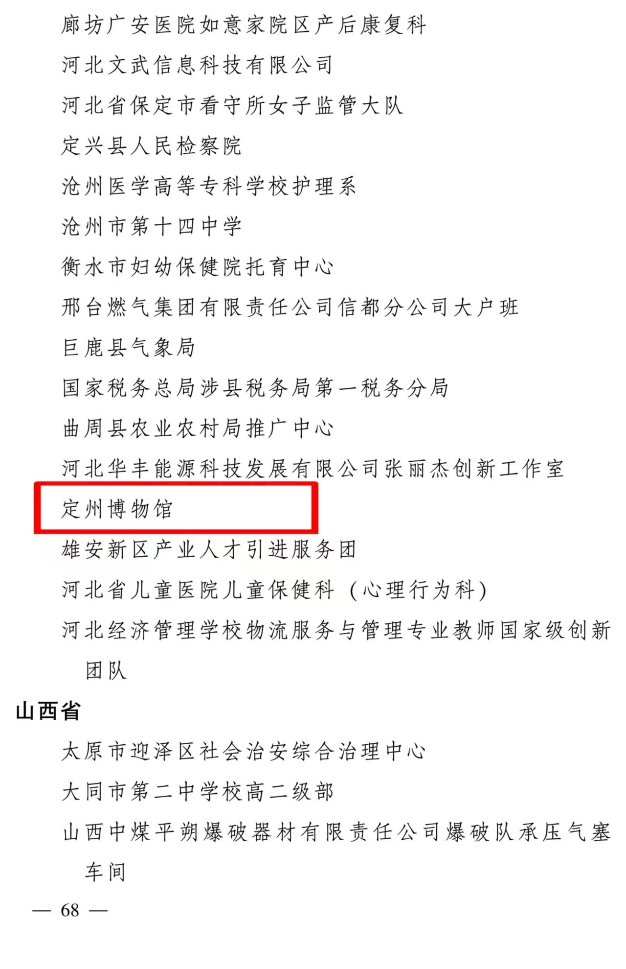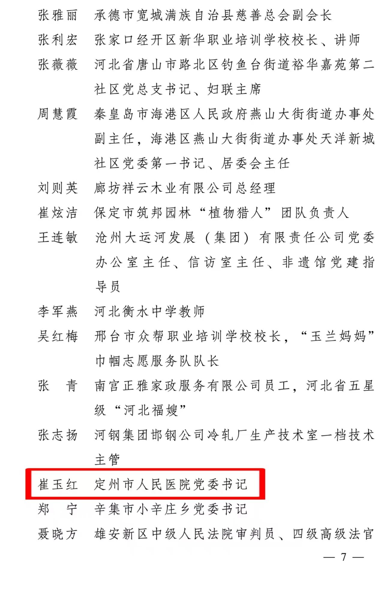 长城网·冀云客户端讯(记者 赵绅光)3月2日,2025年度全国三八红旗手标兵、全国三八红旗手、全国三八红旗集体、全国巾帼文明岗全名单正式公布。定州市人民医院党委书记崔玉红荣获全国三八红旗手称号,定州博物馆获评全国巾帼文明岗。
