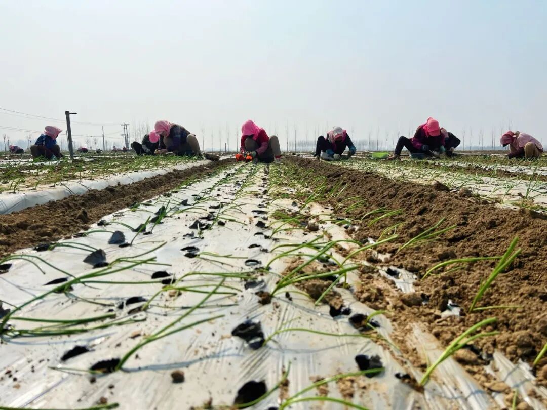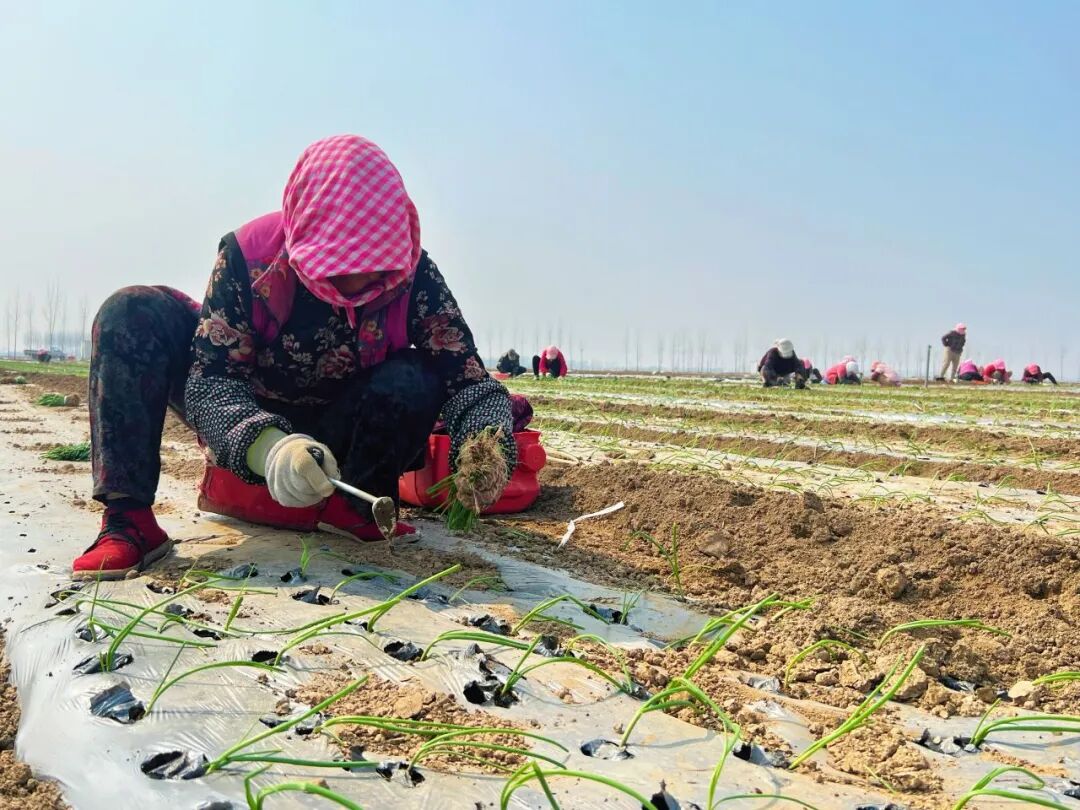 早春时节,走进定州市西城乡大定村,千余亩田地绿意盎然。连片田垄间,本村村民和50余名来自甘肃的务工人员正俯身劳作,手指麻利地将洋葱苗栽进泥土、覆土压实、浇水定苗……一个个忙碌的身影,勾勒出田地间的春日图景。